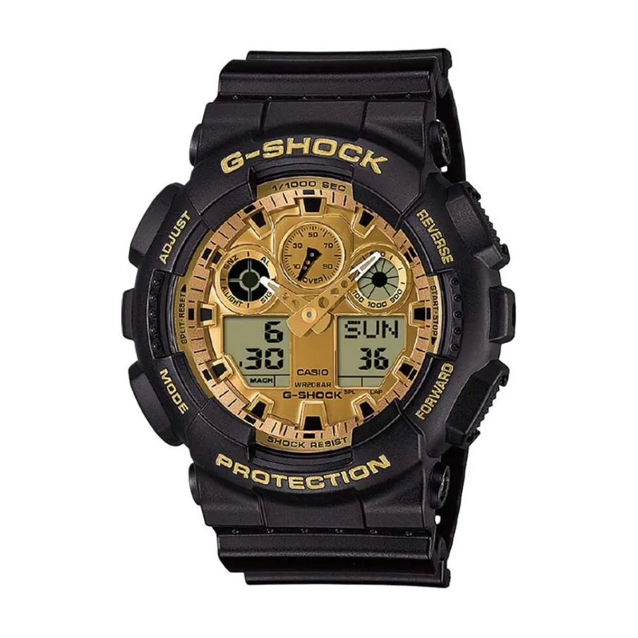 Montre Casio G-Shock Résine Noir Quartz Anadigital Multifonction Ronde 51,2Mm Fond Doré Bracelet Résine Noir Ga-100Ggb-1A9Er