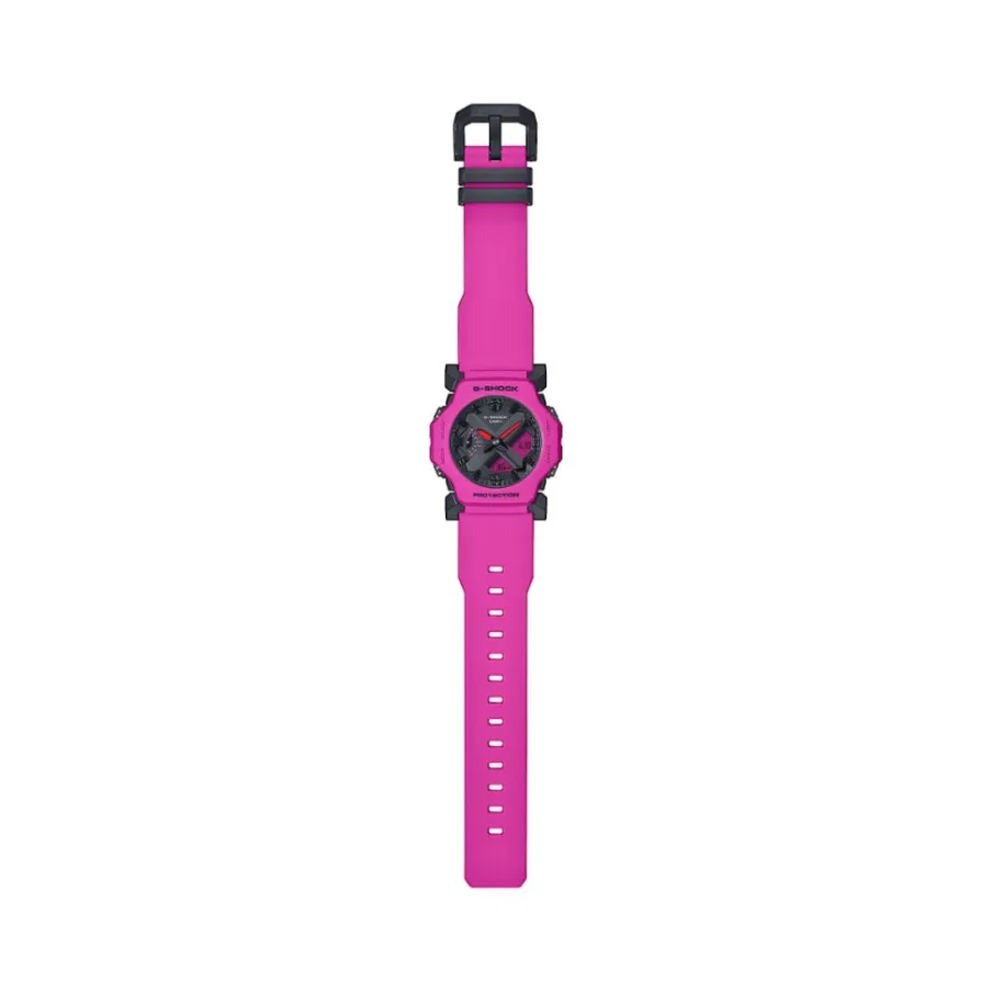 Montre Casio Resine Fuschia Ronde Quartz 42.1mm Fond Noir Bracelet Resine Fuschia Ga-2300-4aer