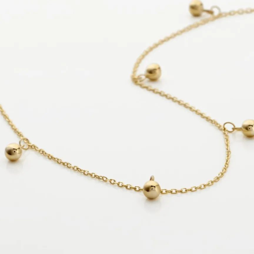 Chaine De Cheville Or Jaune 375/1000 Pampilles Boules Or 24cm