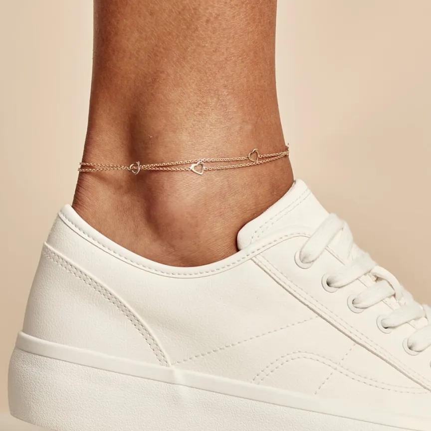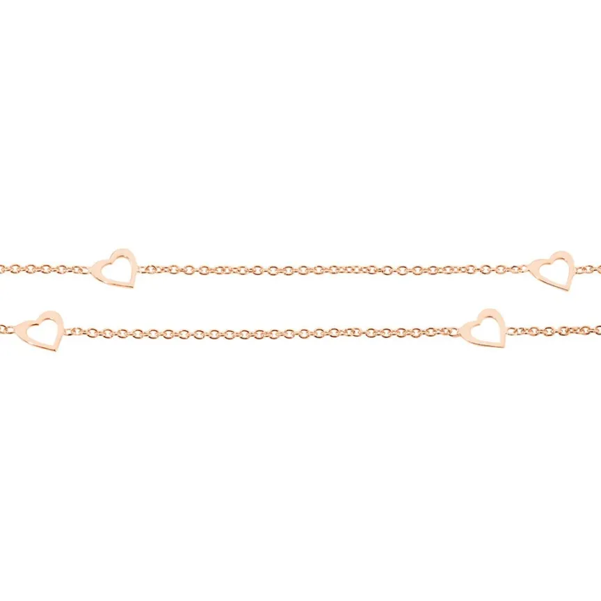 Chaine De Cheville Argent Rose 925/1000 Coeurs Multiple Double Mailles Forcat 26cm