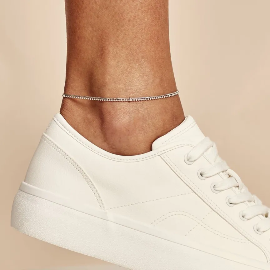 Chaine De Cheville Argent Blanc 925/1000 Double Mailles Boules Et Venitienne 26cm