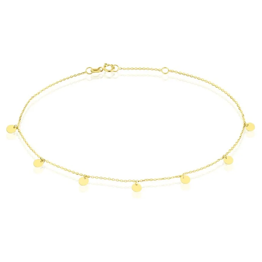 Chaine De Cheville Or Jaune 375/1000 Pastilles Pendantes Maille Jaseron 22+2cm