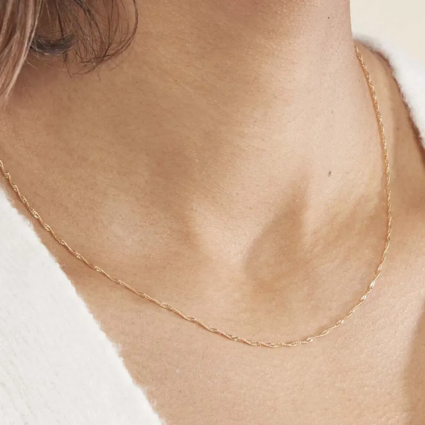 Collier Or Jaune 375/1000 Maille Singapour 1.2mm 45 Cm
