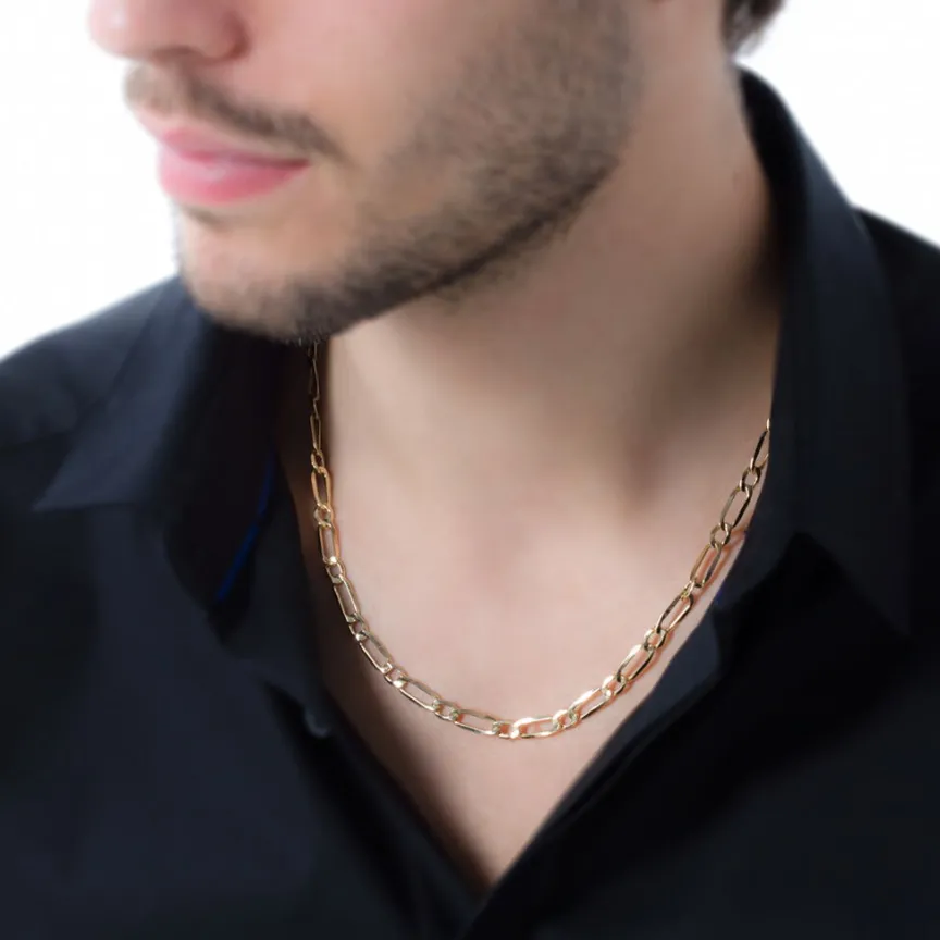 Collier Or Jaune 375/1000 Maille Alternee 1/1 Largeur 5.4mm 50cm