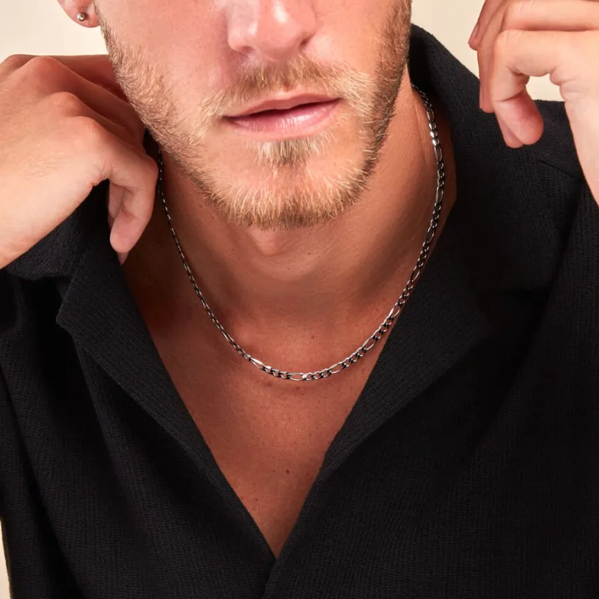 Collier Argent Blanc 925/1000 Maille Alternee 1/3 Largeur 4.9mm 50cm