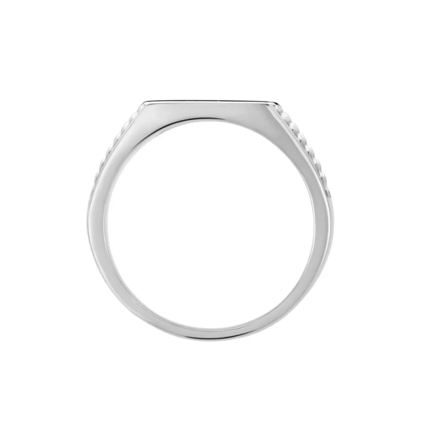 Chevalière Argent Blanc 925/1000 Rectangle Lisse Corps De Bague Travaille