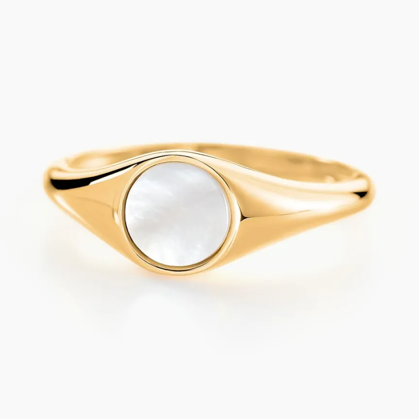 Chevalière Or Jaune 375/1000 Plateau Rond Nacre