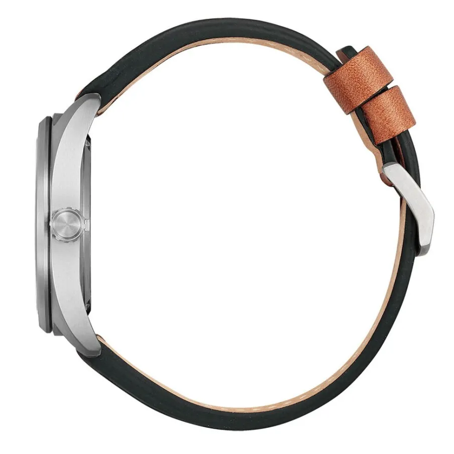 Montre Citizen Super Titanium Titane Argenté Ronde 42mm Quartz Solaire Fond Vert Bracelet Cuir De Veau Marron Bm8560-11xe