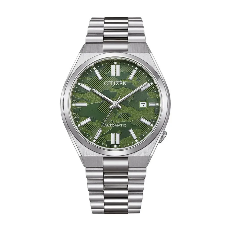Montre Citizen Tsuyosa Acier Argenté Ronde 40mm Automatique Fond Kaki Militaire Bracelet Acier Argenté Nj0159-86x