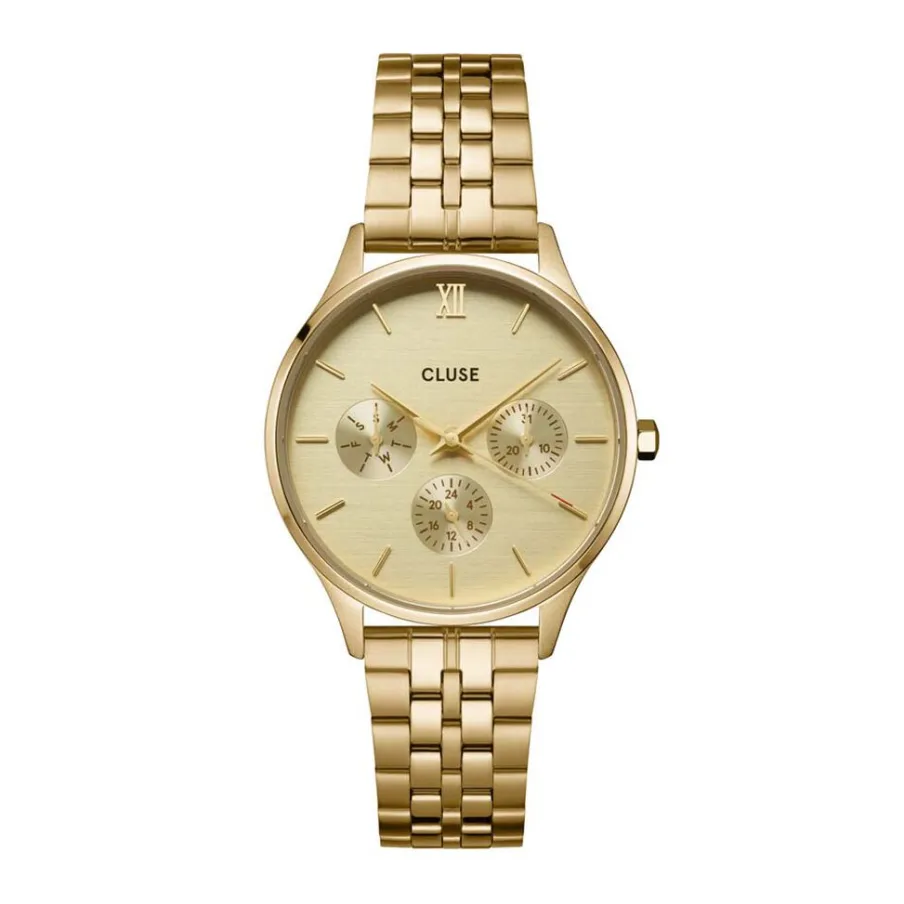 Montre Cluse Minuit Multifonction Acier Doré Rond Quartz Multifonction 34mm Lunette Acier Doré Fond Doré Bracelet Acier Doré Cw10701