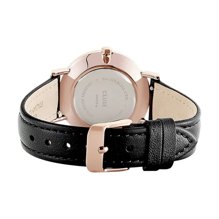 Montre Cluse Minuit Acier Dore Ronde Quartz 33mm Fond Noir Bracelet Cuir Noir Cw0101203013