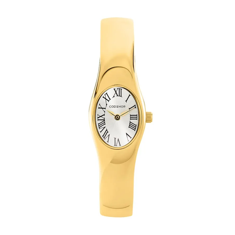 Coffret De Montre Codhor Colette Alliage Doré Quartz Ovale 18mm Fond Argenté Bracelet Jonc Alliage Doré + Bracelet Maille Serpent Dore P101205-a