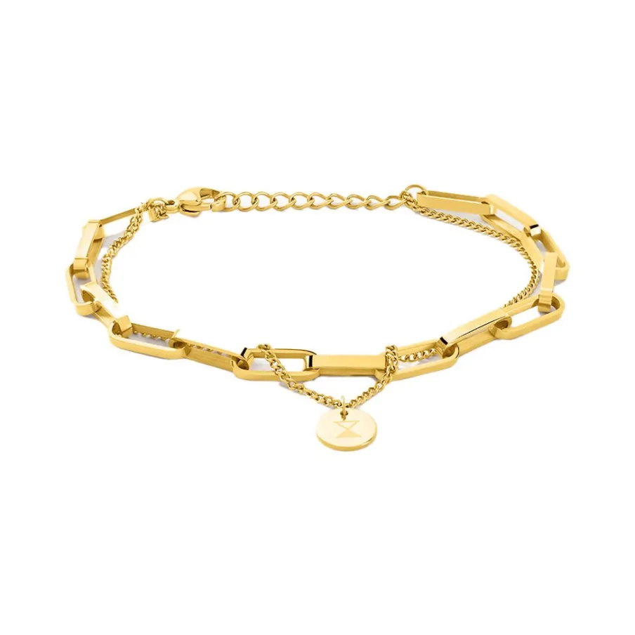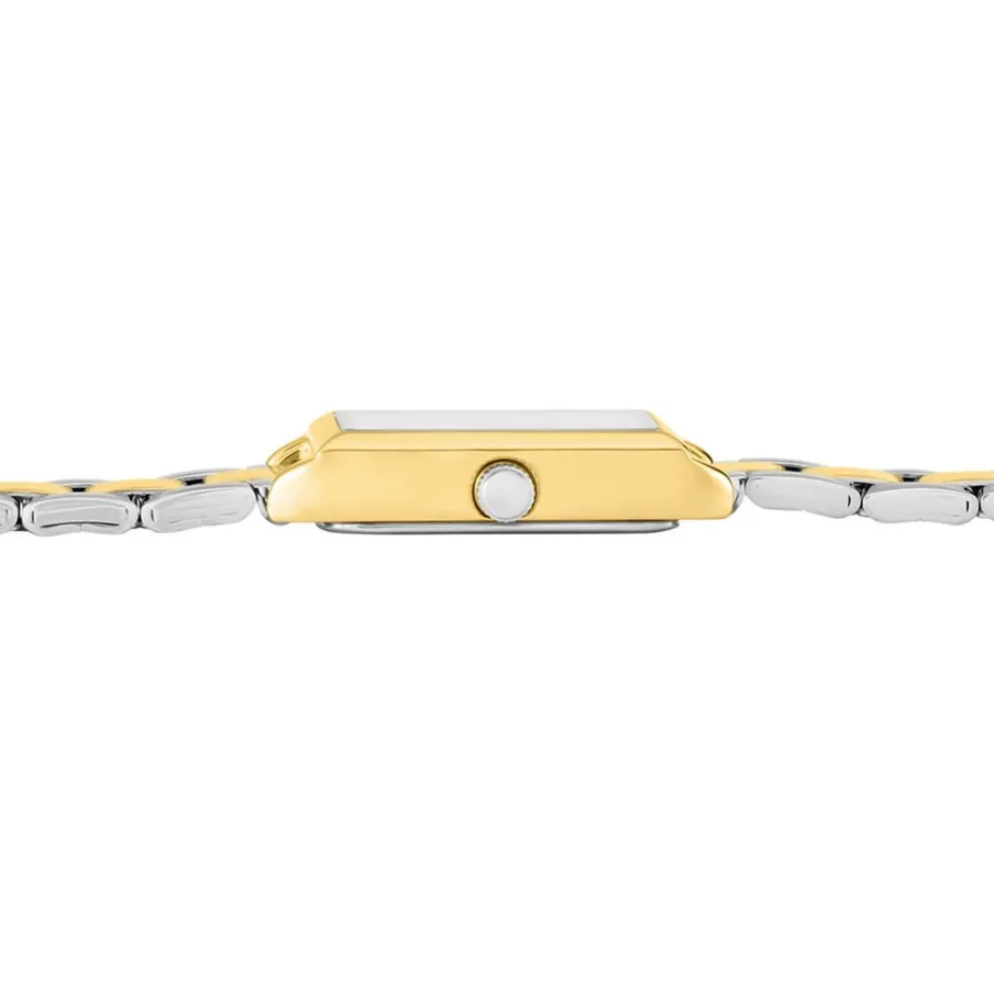 Montre Codhor Suzy Alliage Doré Rectangulaire Quartz 17.5×28.5mm Fond Dore Bracelet Acier Bicolore Et Bracelet Acier Dore Double Chaine 16+3cm P101073-j