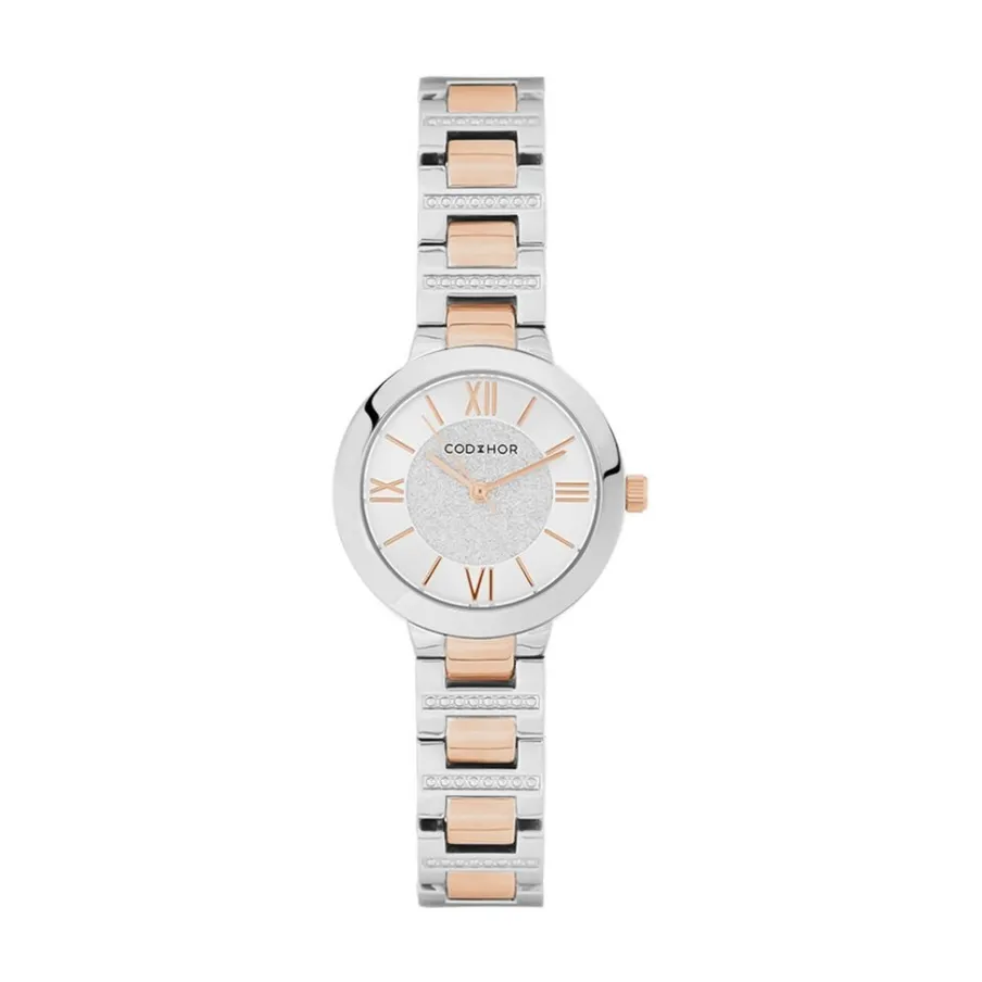 Montre Codhor Lauryn Alliage Argenté Ronde Quartz 31mm Fond Argenté Et Glitter Bracelet Alliage Bicolore Wba0089-002