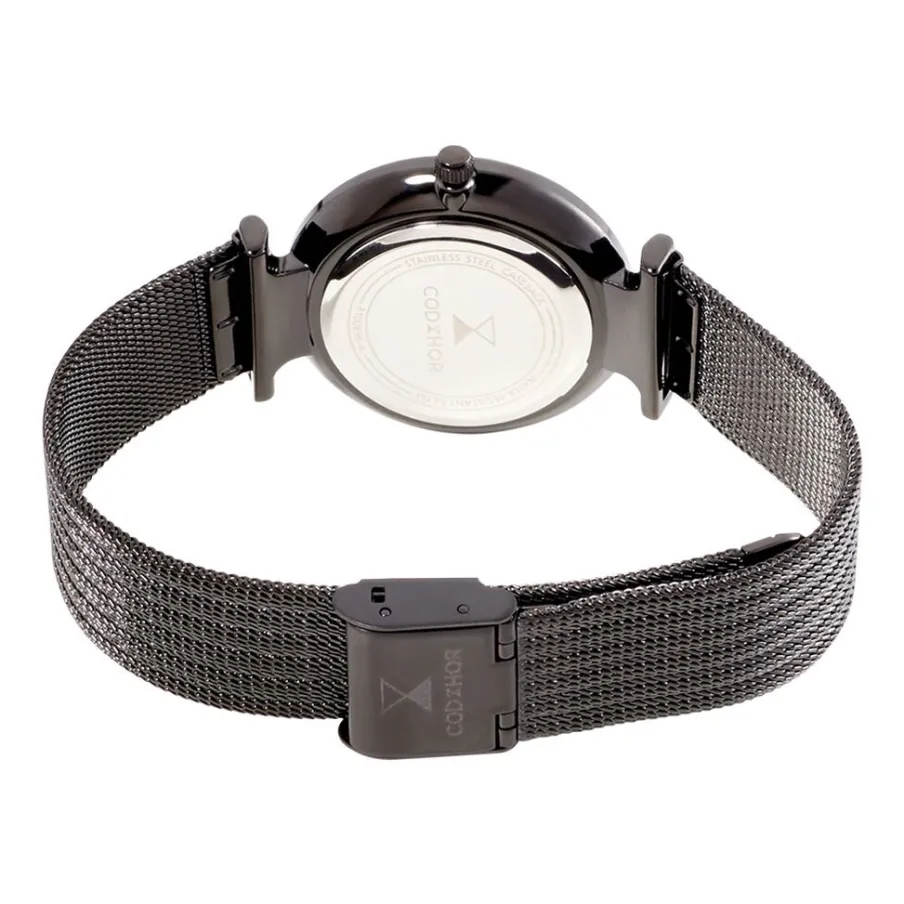 Montre Codhor Nidia Alliage Noir Ronde Quartz 33mm Fond Noir Bracelet Milanais Acier Noir P100896-a