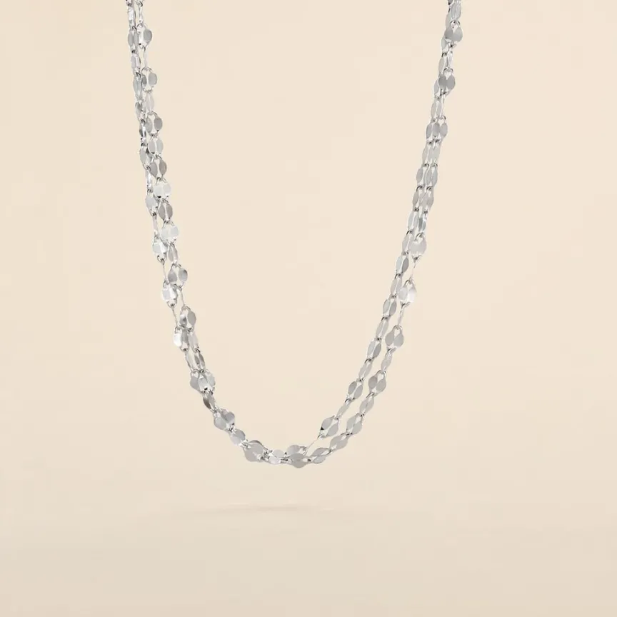 Collier Argent Blanc 925/1000 Double Chaines Mailles Fantaisie 50cm