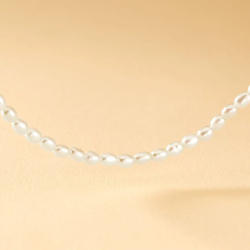 Collier Or Jaune 375/1000 Perles De Culture Grain De Riz Nacre 3.5/4mm 42cm