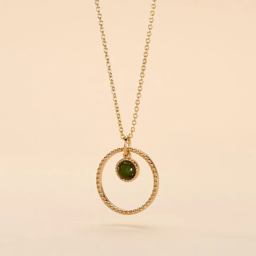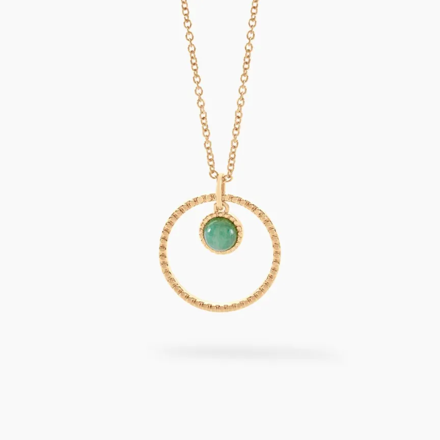 Collier Plaqué Or Cercle Effet Perlé Aventurine Ronde Maille Forcat 45cm