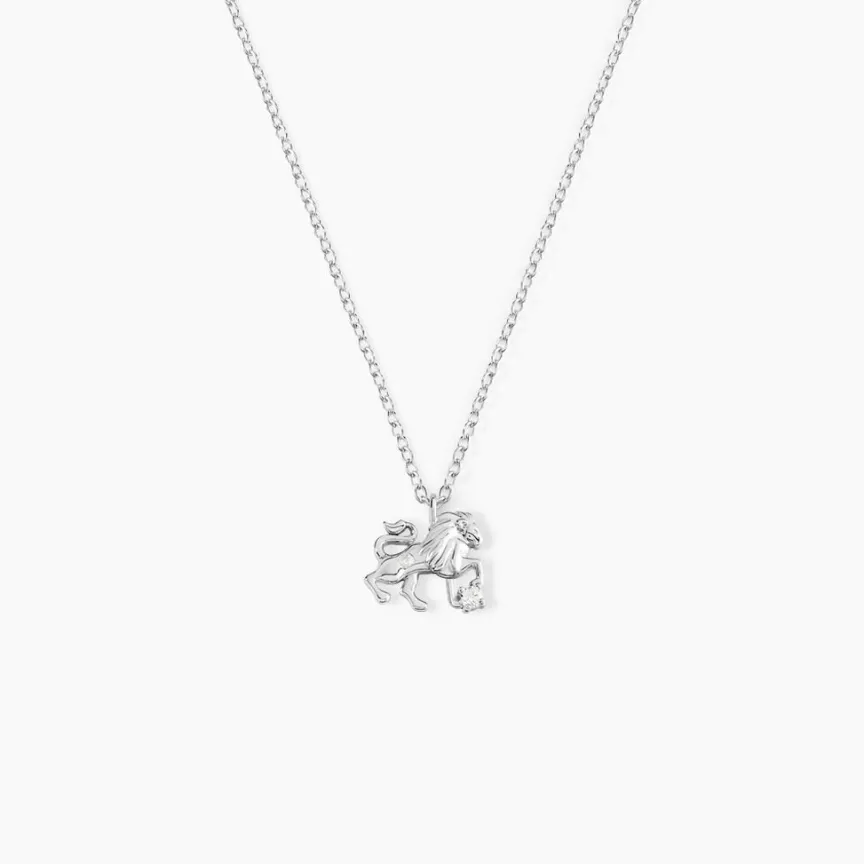 Collier Argent Blanc 925/1000 Signe Astrologique Lion Oxydes De Zirconium Maille Forçat 38+3cm