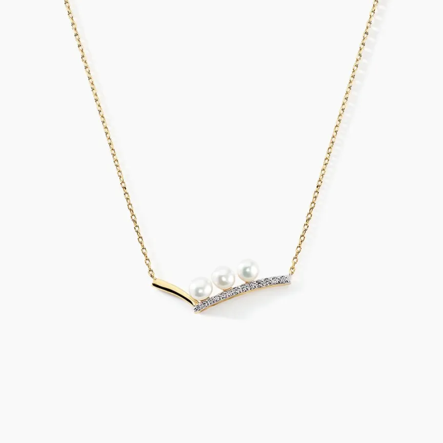Collier Or Jaune 375/1000 3 Perles De Culture Blanches Bouton 3mm Maille Forçat 40+2cm