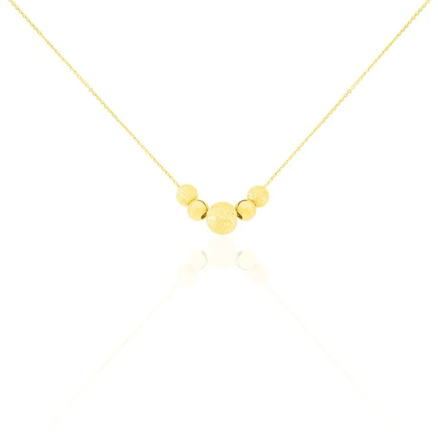 Collier Or Jaune 375/1000 2 Petites Boules Lisses + 3 Boules Sablees Dorees Maille Forcat 41cm