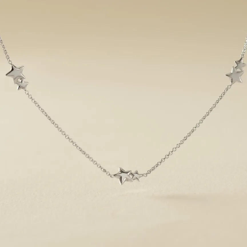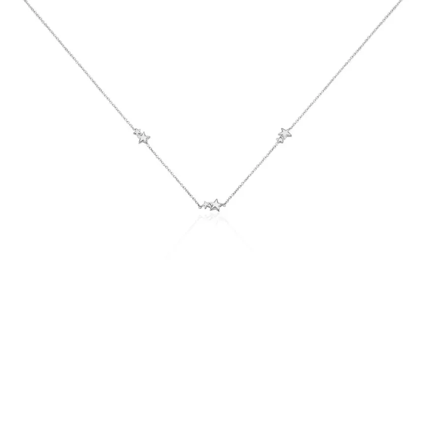 Collier Argent Blanc 925/1000 Duo Etoiles Multiple Maille Forcat 42cm