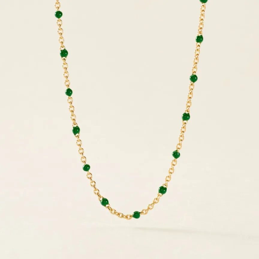 Collier Argent Dore 925/1000 Email Vert 44cm
