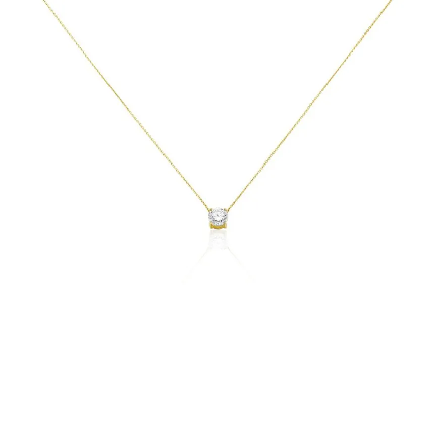 Collier Or Jaune 750/1000 Solitaire Diamant Synthetique 1ct 45cm