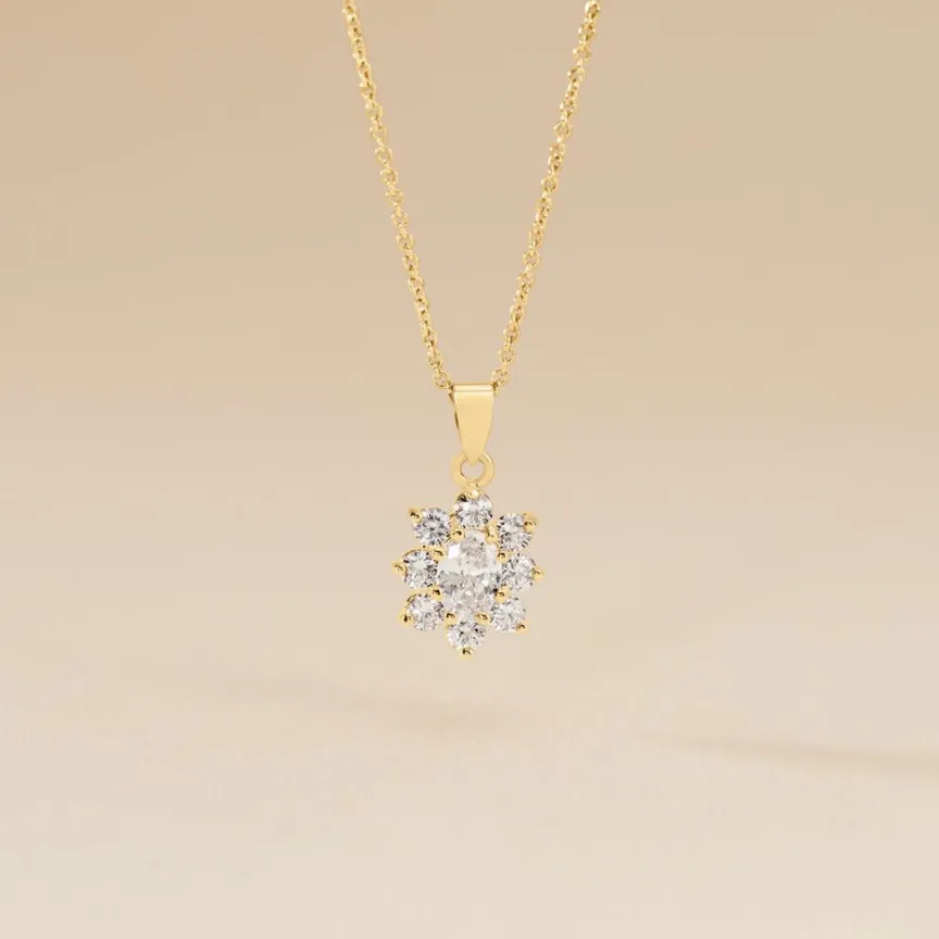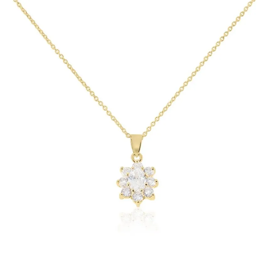 Collier Plaqué Or Jaune Entourage Marguerite Oxydes De Zirconium Chaine Forcat 44cm
