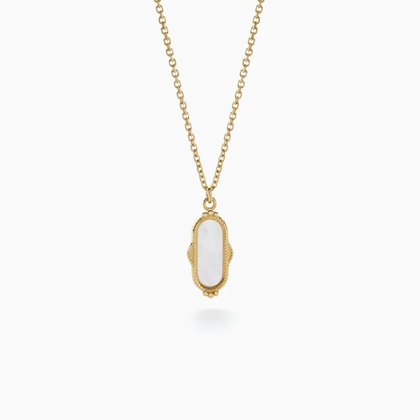 Collier Or Jaune 375/1000 Ovale Nacre Blanche Effet Perle Maille Jaseron 40+2cm