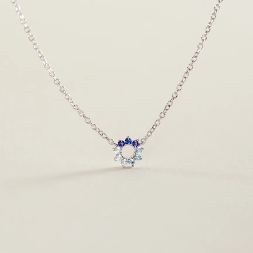 Collier Argent 925/1000 pavel Fleur Camaieu Bleu Serti Griffes Oxydes De Zirconium Maille Forçat 45cm