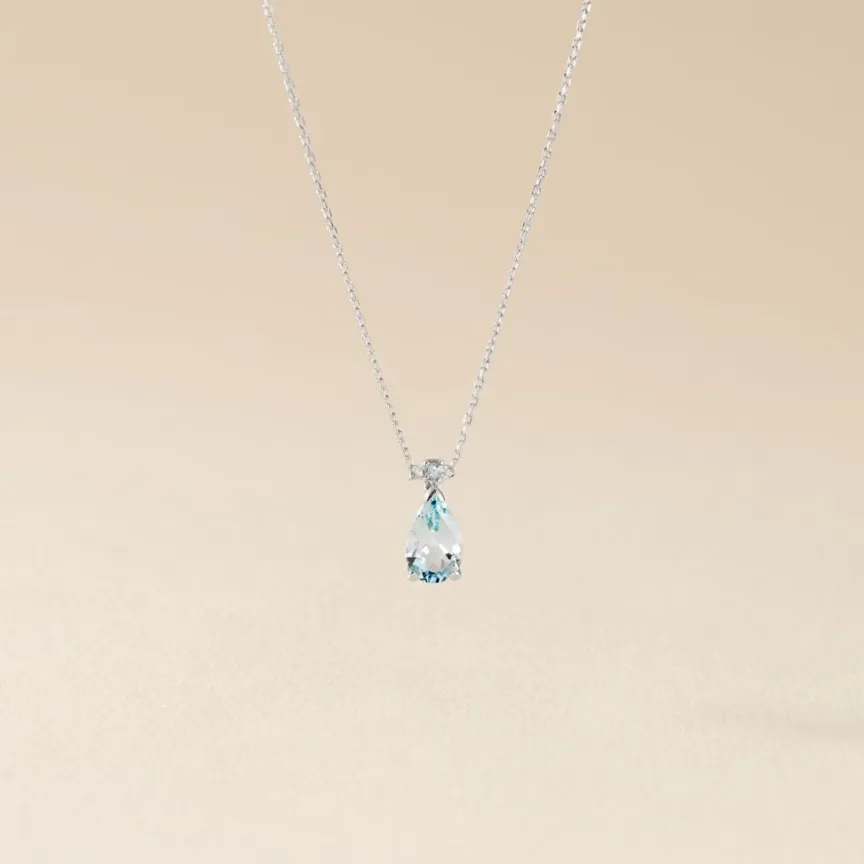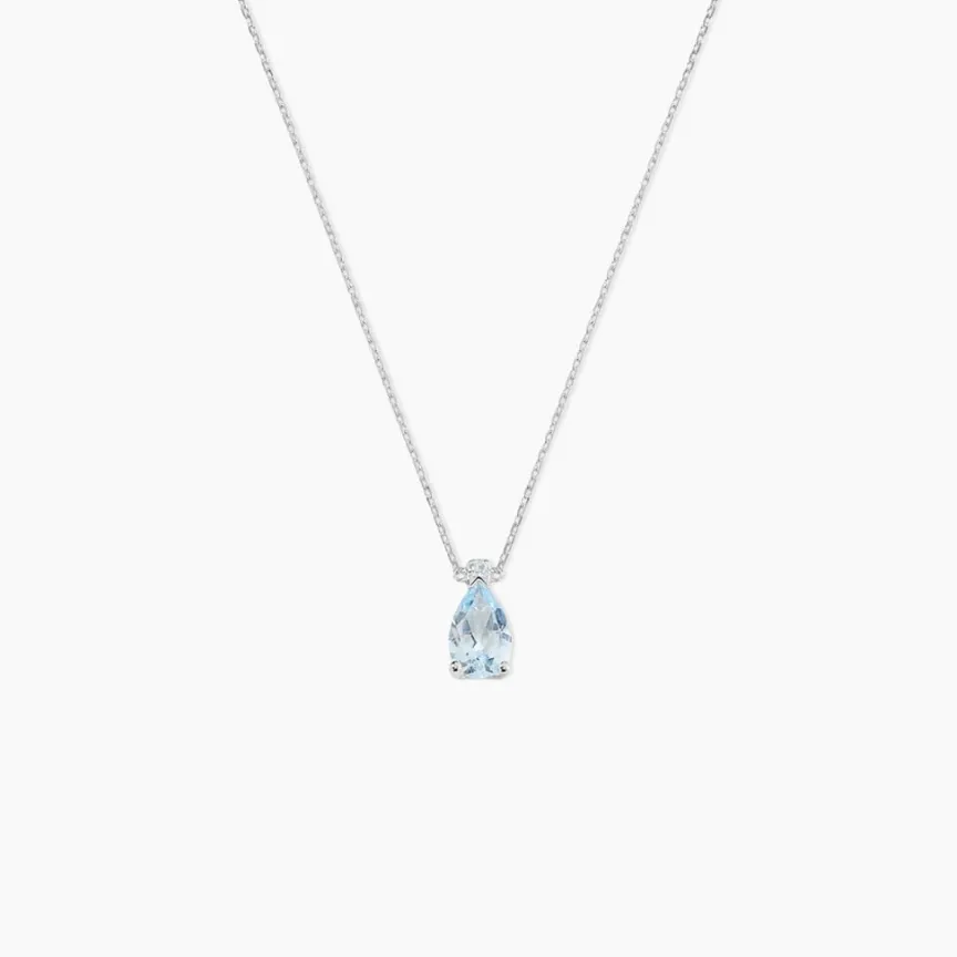Collier Or Blanc 375/1000 Maille Forçat Topaze Bleue Poire Serti Griffes 40cm