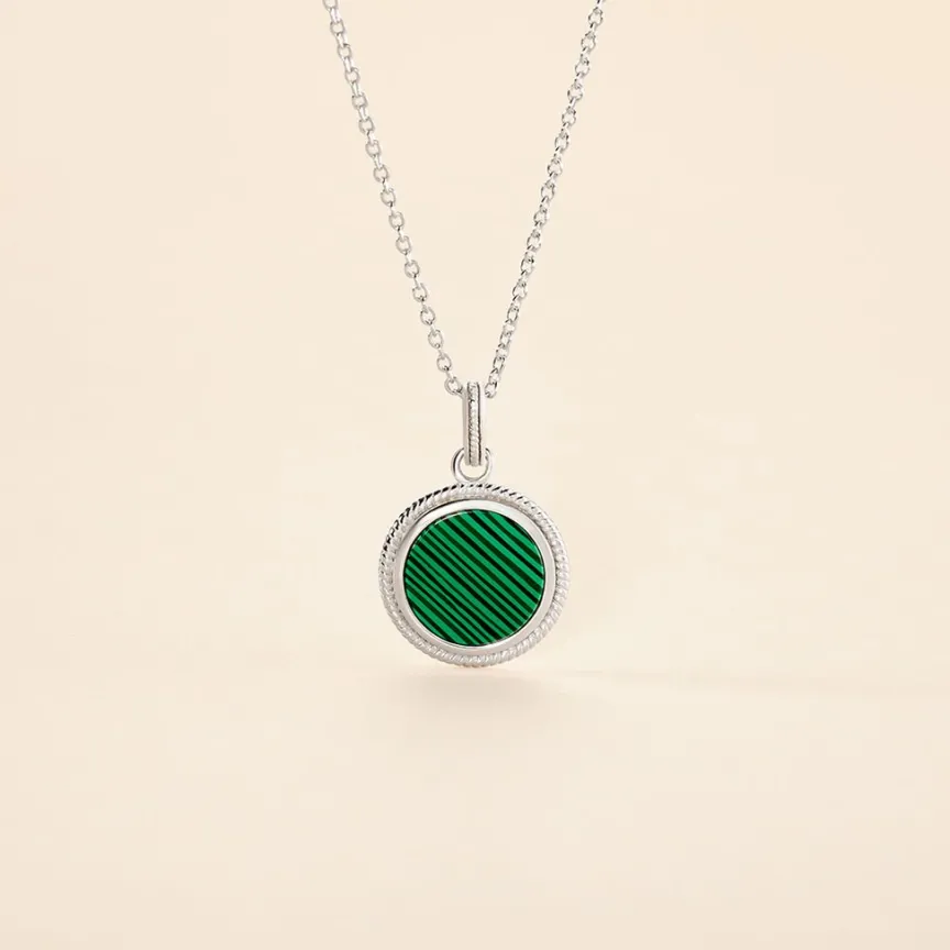 Collier Argent Blanc 925/1000 Pastille Malachite Maille Forcat 42+3cm