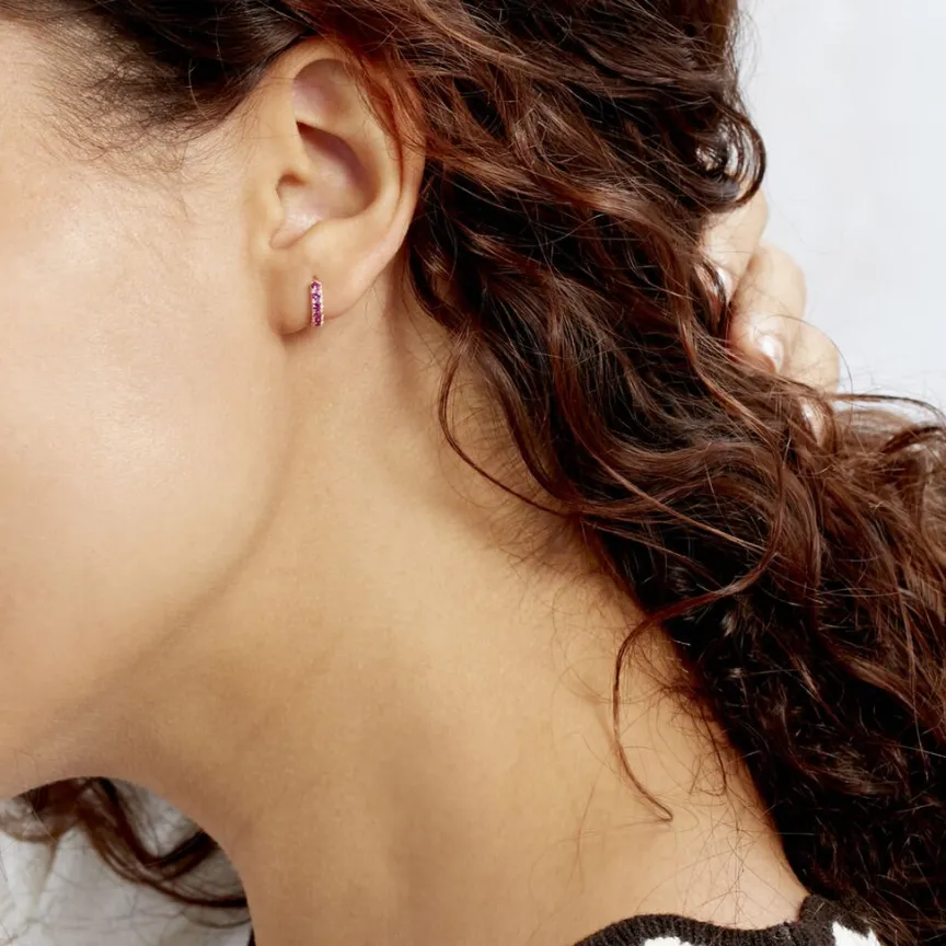 Creoles Or Jaune 375/1000 Serti 4 Griffes Oxydes De Zirconium Roses