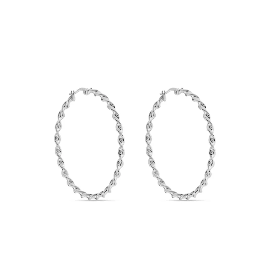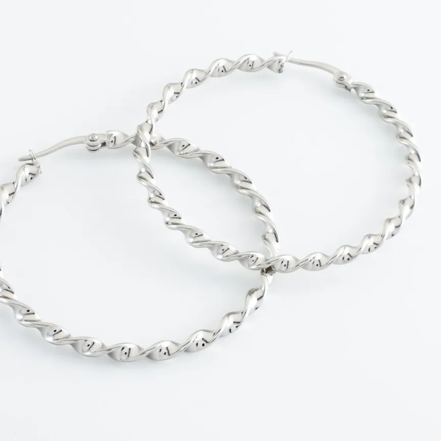 Créoles Acier Inoxydable Blanc Torsadees Largeur 3mm Diametre 40mm