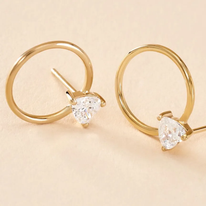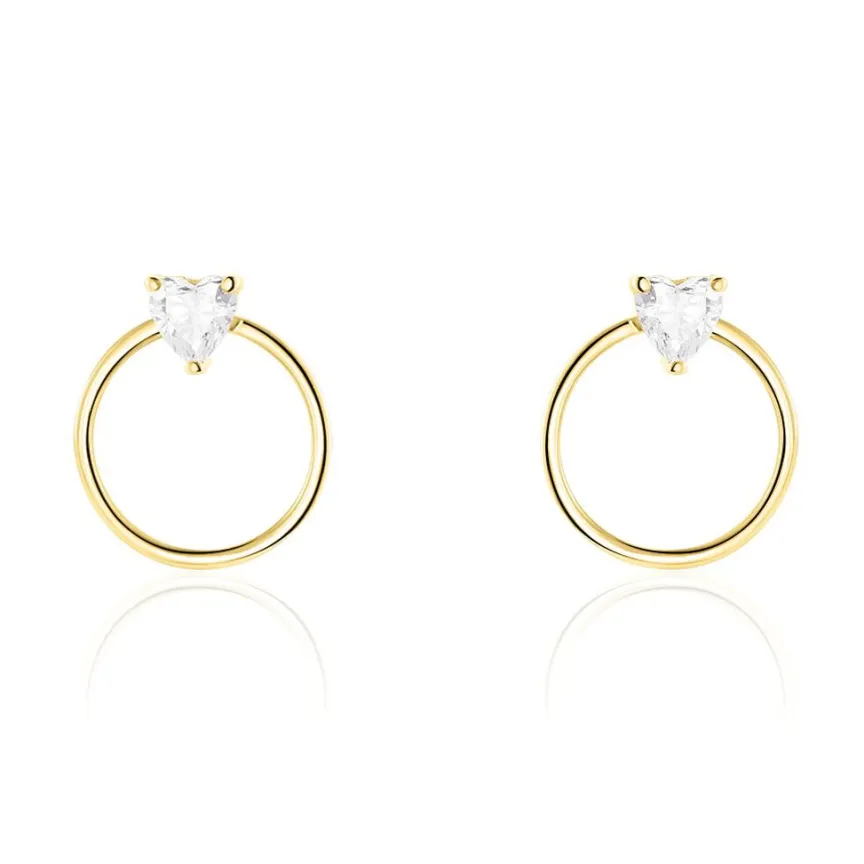Créoles Or Jaune 375/1000 Coeur Oxydes De Zirconium Serti Griffes
