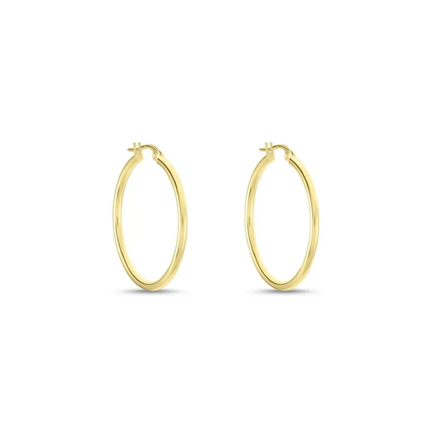 Créoles Or Jaune 375/1000 Fil Rond Lisse Largeur 2mm Diamètre 25mm