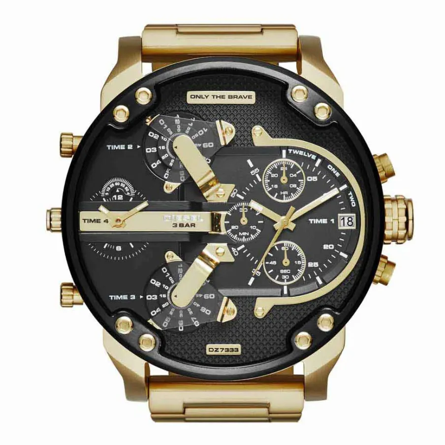 Montre Diesel Mr Daddy 2.0 Acier Dore Ronde Quartz Chronographe 57mm Fond Noir Bracelet Acier Dore Dz7333