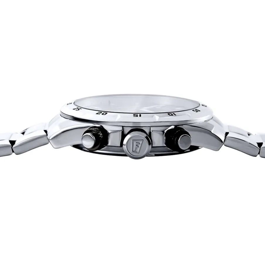Montre Festina Timeless Chronograph Acier Blanc Ronde Quartz Chronographe 45mm Fond Bleu Bracelet Acier Blanc F20463/2