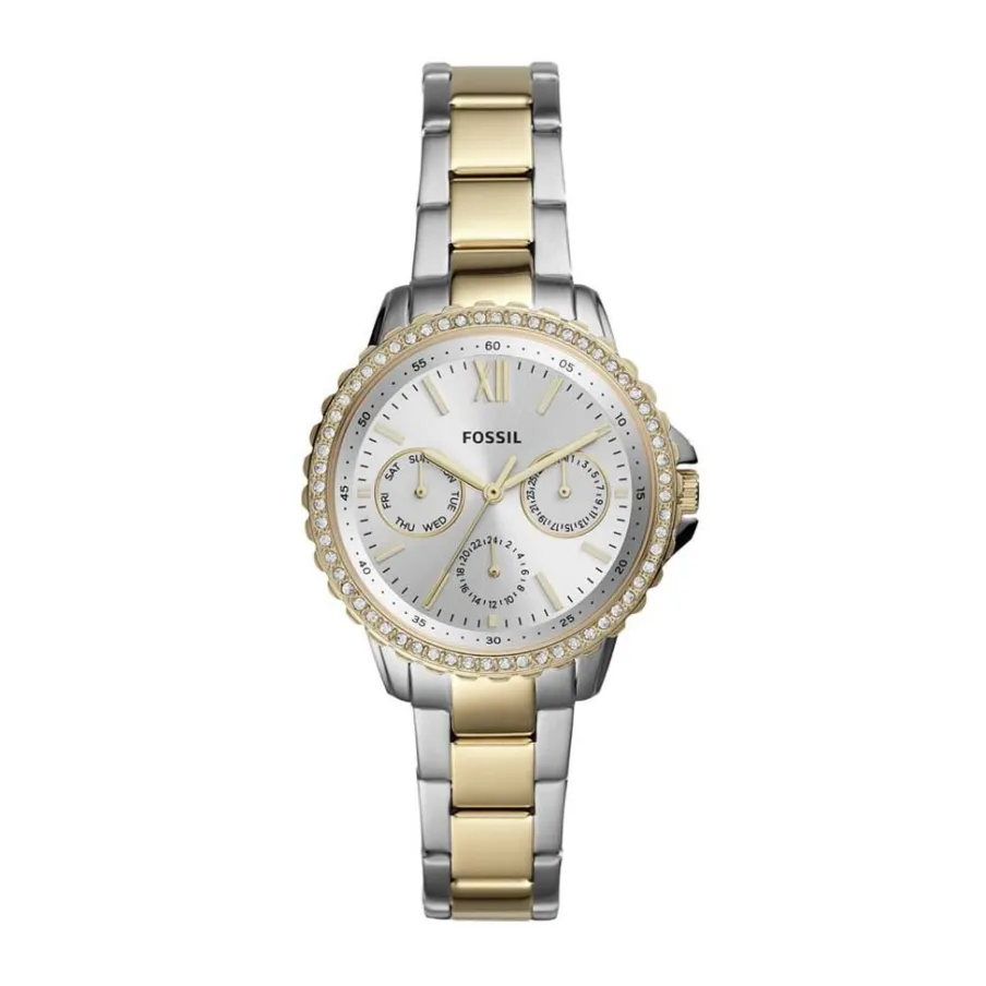 Montre Fossil Izzy Multifunction Acier Argenté Ronde Quartz 36mm Fond Argenté Bracelet Acier Bicolore Argenté/doré Es4784