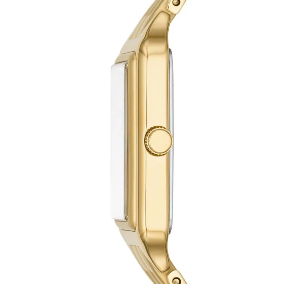 Montre Fossil Raquel Acier Doré Rectangulaire Quartz 23mm Fond Argenté Bracelet Acier Doré Es5220