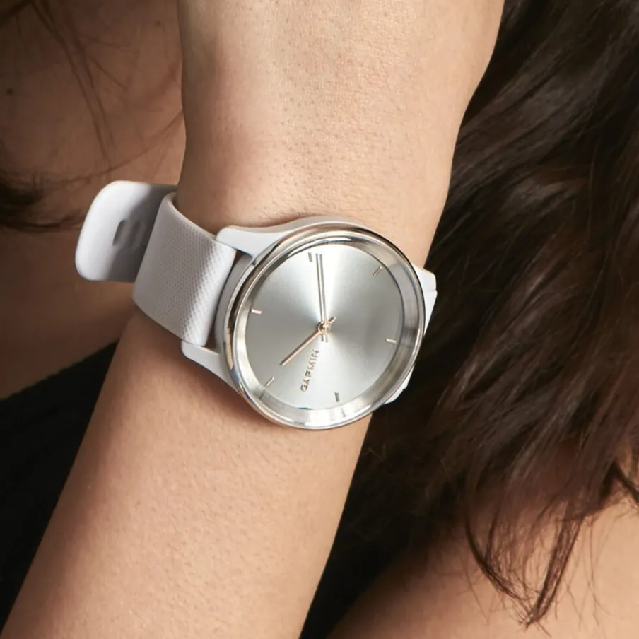 Montre Garmin Vívomove® Trend Acier Argenté Ronde Connectée 40 Mm Fond Personnalisable Bracelet Silicone Gris 010-02665-03