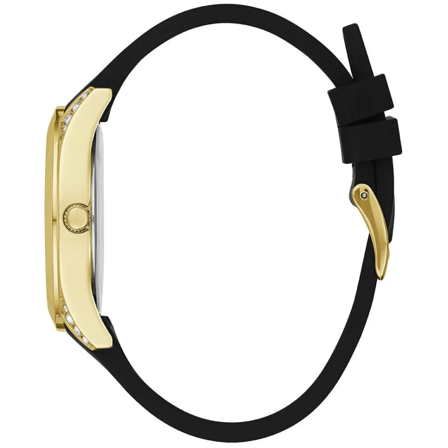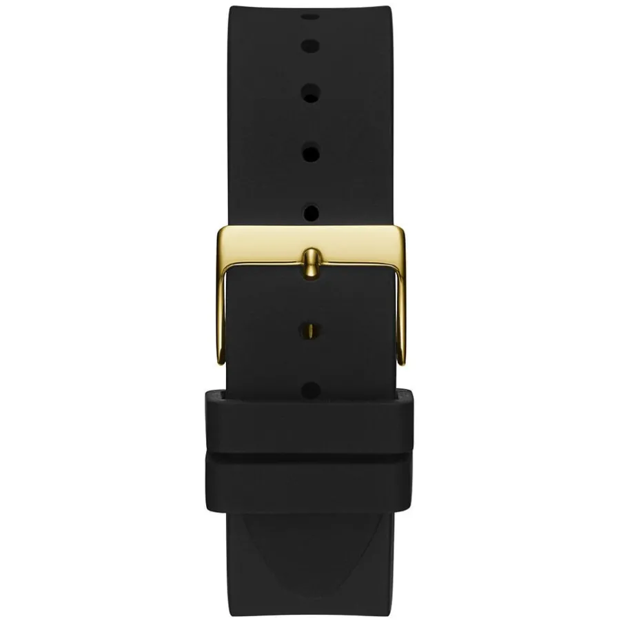 Montre Guess Clarity Acier Dore Ronde Quartz 39mm Fond Dore Bracelet Silicone Noir Gw0109l1