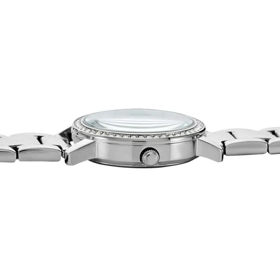 Montre Guess Melody Acier Ronde Quartz 28mm Fond Blanc Lunette Strass Bracelet Acier Gw0468l1