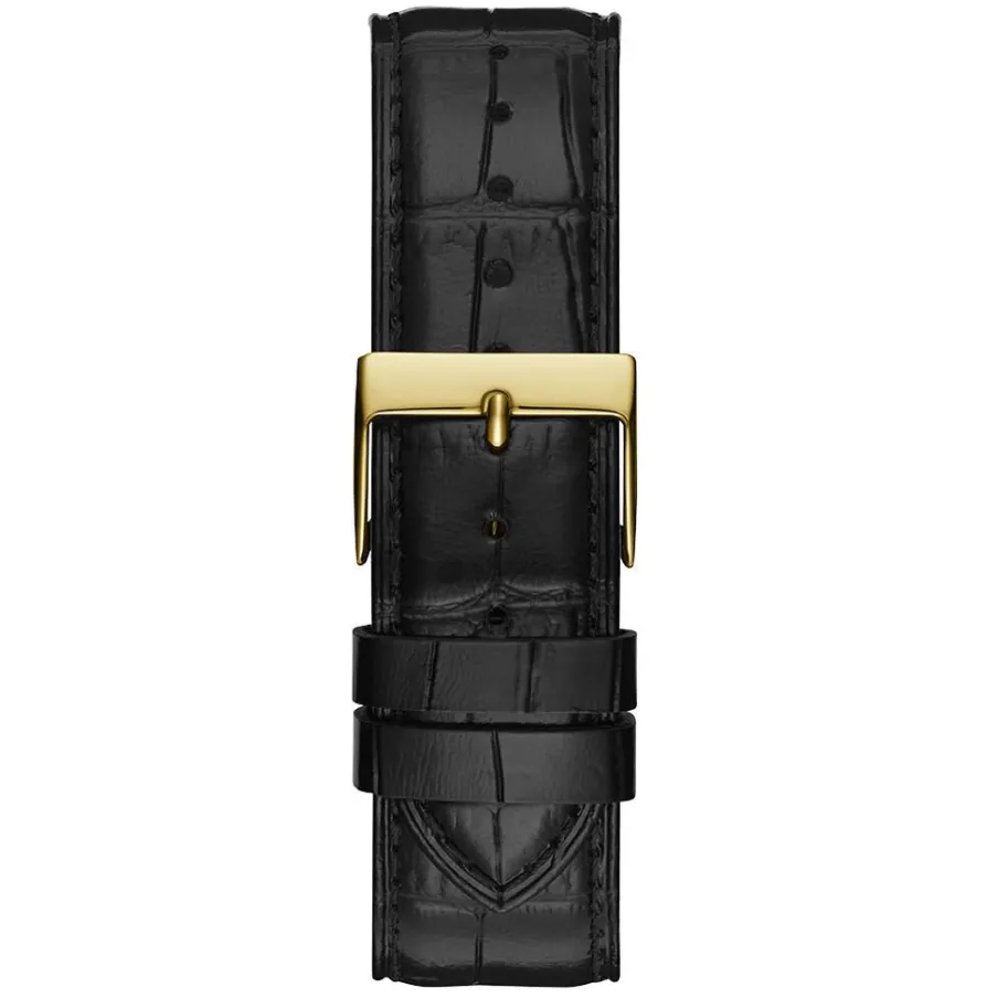 Montre Guess Monarch Acier Doré Ronde Quartz 44mm Fond Noir Bracelet Cuir Noir Gw0566g1