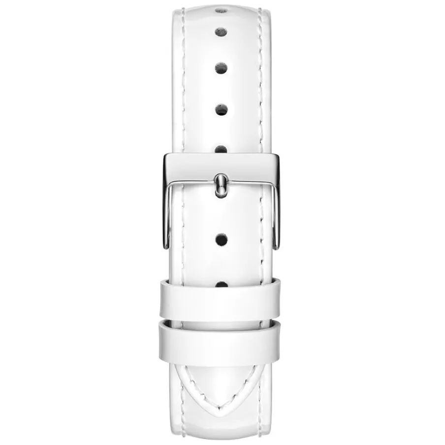 Montre Guess Sugar Acier Gris Ronde Quartz 37mm Fond Blanc Bracelet Cuir Blanc Gw0098l1