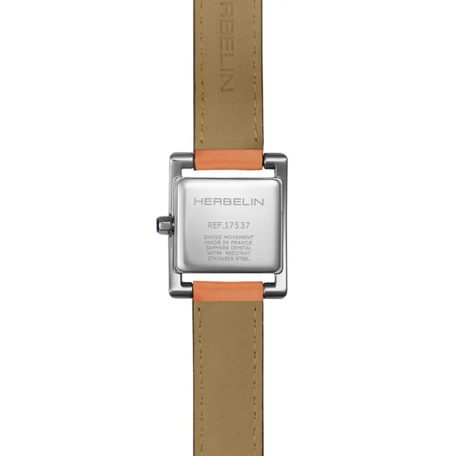 Montre Herbelin 5Eme Avenue Acier Inoxydable Argenté Quartz Rectangulaire 23,4X19Mm Fond Argenté Bracelet Cuir De Veau Orange 17537Ap08Md