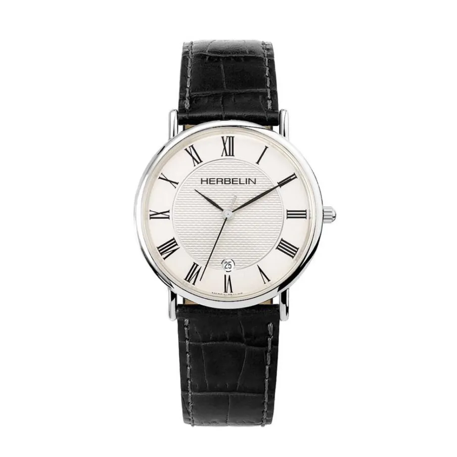 Montre Herbelin Classique Acier 38mm Ronde Fond Blanc Bracelet Cuir Noir 12248ap08