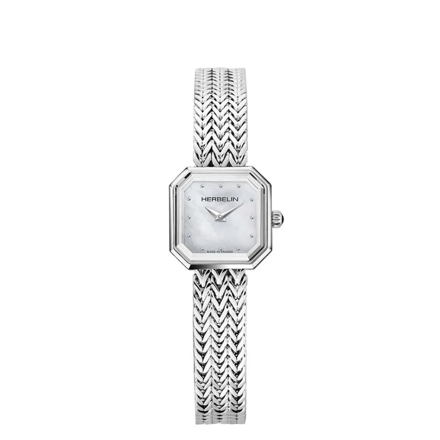 Montre Herbelin Octogone Acier Argente Geometrique Quartz 22.2mm Fond Nacre Blanche Bracelet Acier Argente Milanais 17436b19