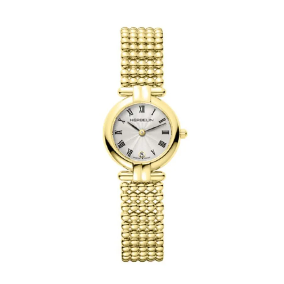 Montre Herbelin Perles Acier Dore Ronde Fond Blanc Bracelet Perles Acier Dore 16873/bp08
